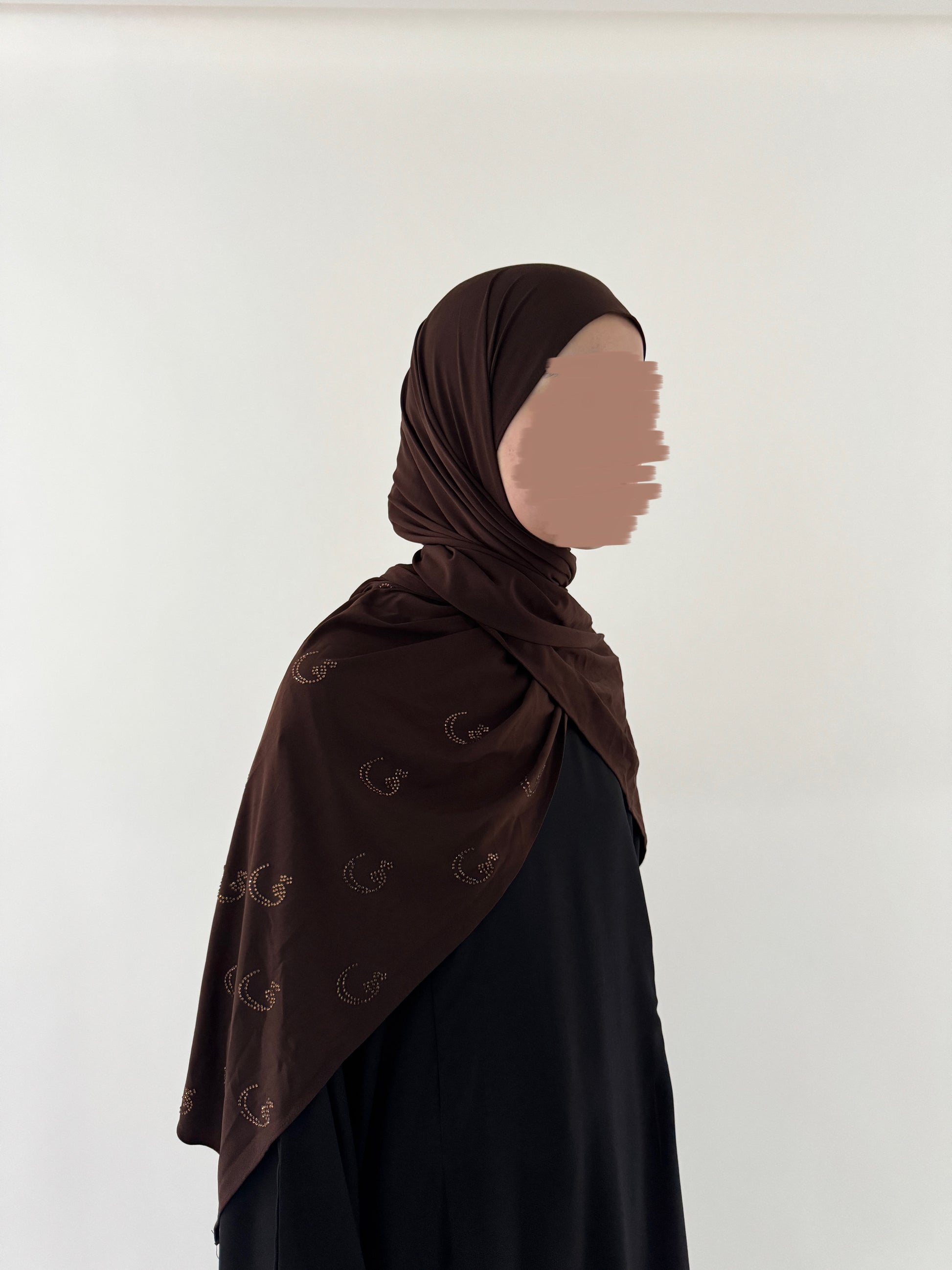 Our Premium Jersey Hijabs redefine comfort and style with their silky-soft fabric and lightweight feel. Designed to stay in place effortlessly, these hijabs offer a polished, elegant look for any occasion. Each hijab is adorned with our signature rhinestone logo at the end, adding a subtle, eye-catching detail to elevate your outfit.