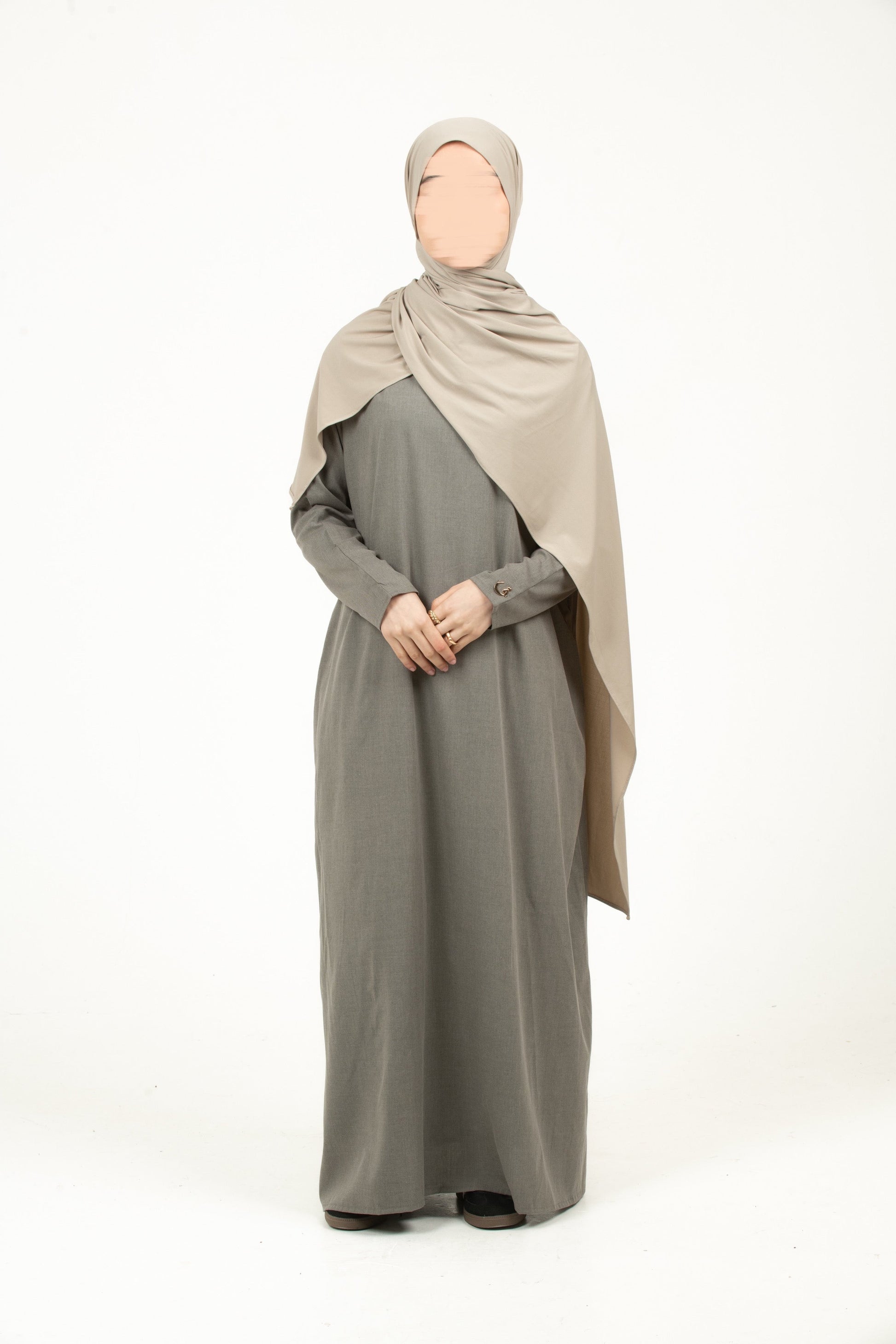 Our Earthy Collection Abaya is crafted from soft, breathable linen for a luxurious feel and modest silhouette. The oversized design ensures effortless elegance, while wide sleeves with hidden inner buttons add versatility and comfort. Subtle logo detailing on the sleeve enhances the timeless style.