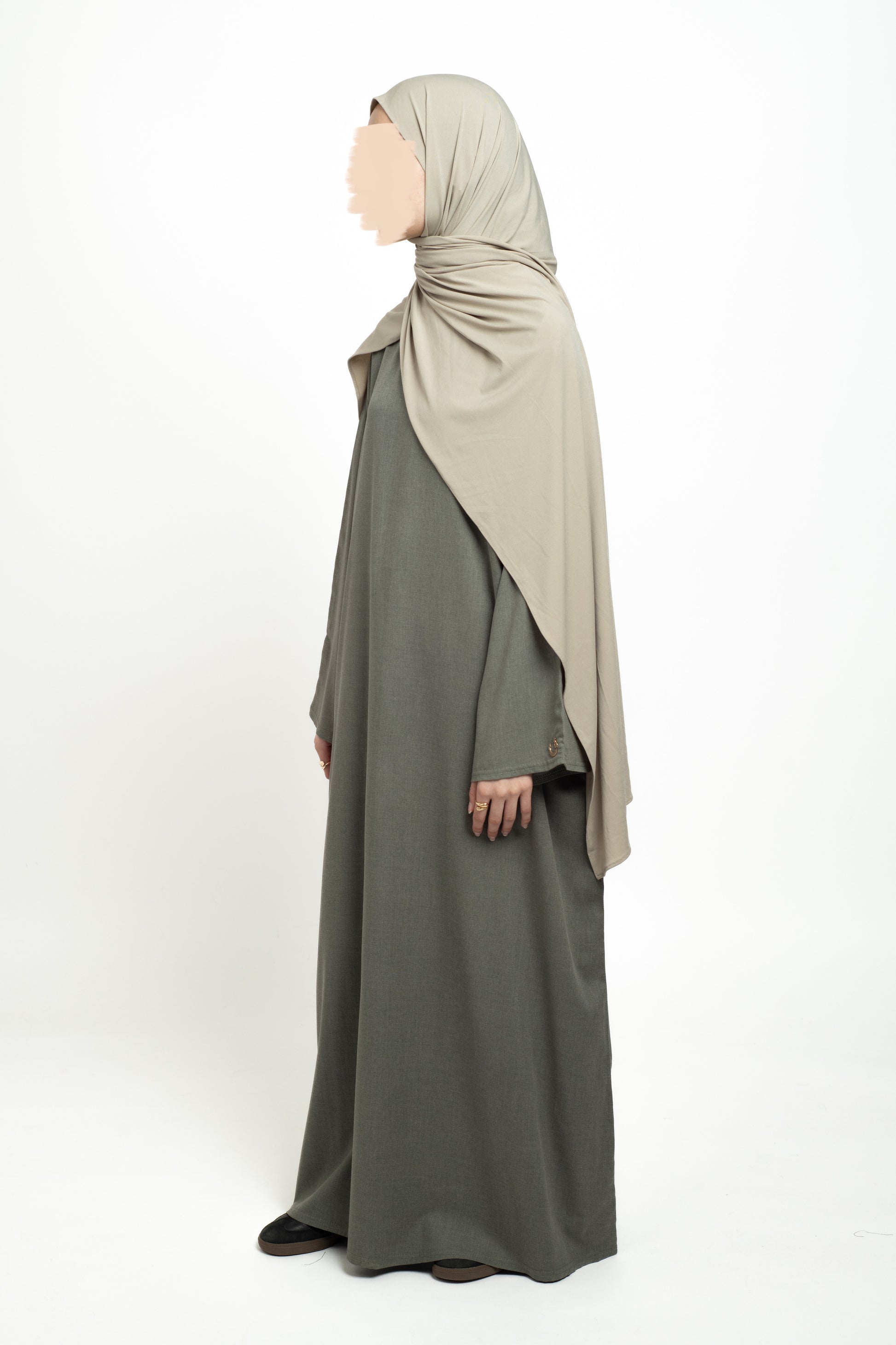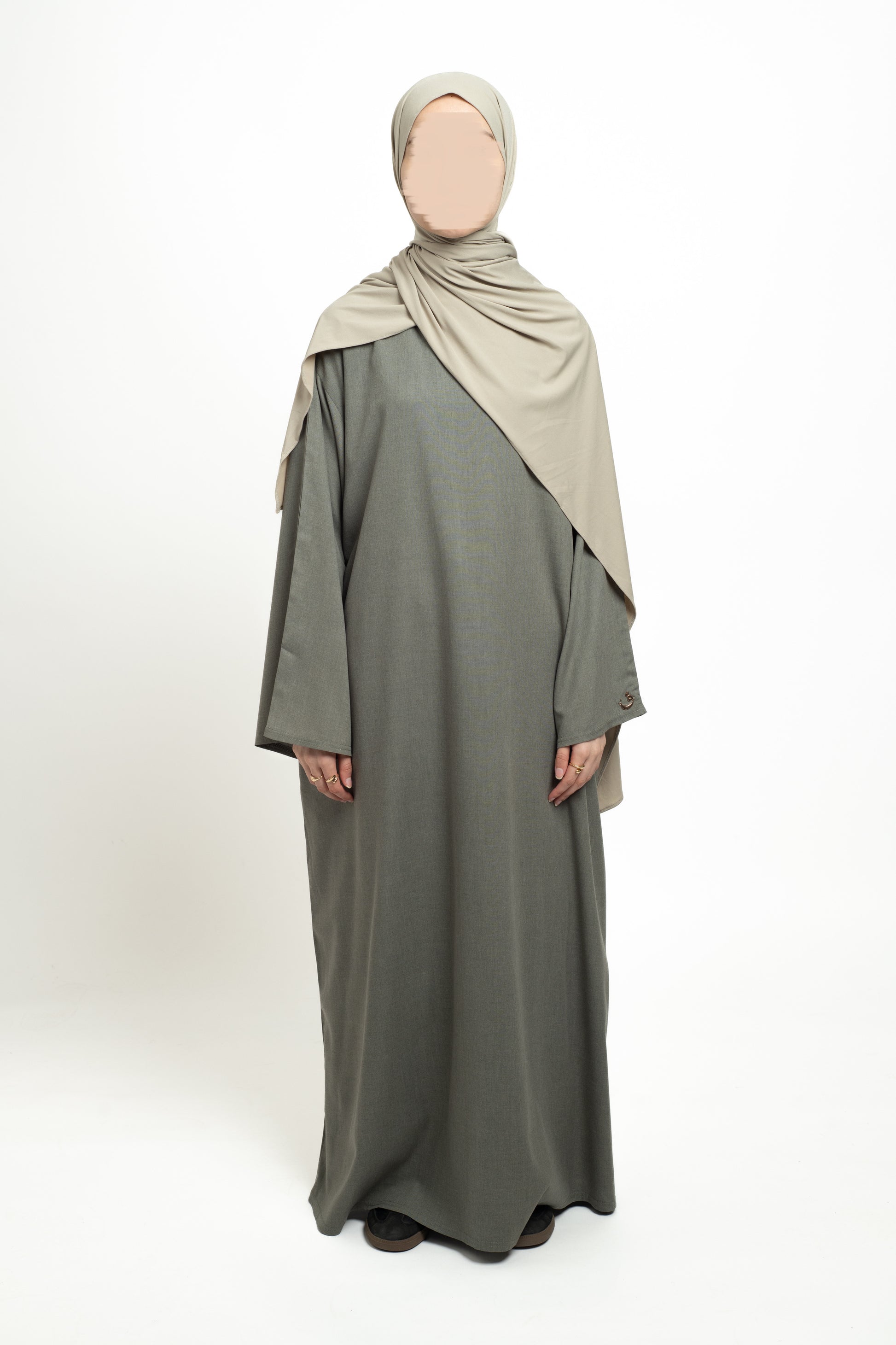 Our linen abaya are slightly thicker in gsm than our summer abayas. They are timeless modesty with modern comfort. The oversized, flowing design offers complete coverage with maintaining a relaxed, graceful silhouette. Made from soft, breathable linen, this abaya keeps you warm without feeling heavy, making it perfect for winter wear. The oversized design ensures effortless elegance, while wide sleeves with hidden inner buttons add versatility and comfort. Subtle logo detailing on the sleeve enhances the timeless style.