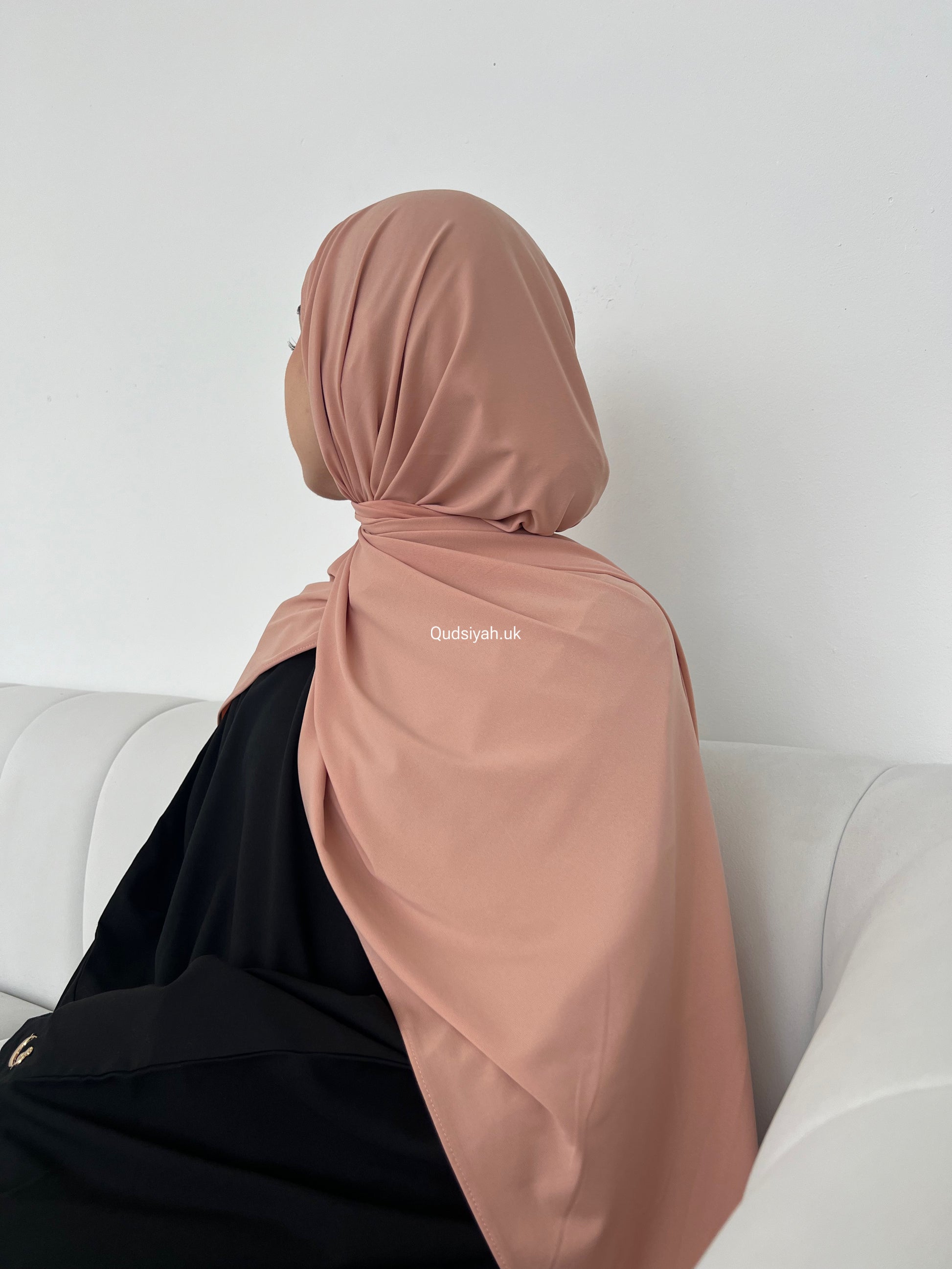 Our premium Jersey Hijabs are crafted from a silky,strechy fabric that feels luxurious while providing the perfect drape. These hijabs offer full coverage, making them ideal for any occasions, whether it's a casual day or special event. The delicate embriodary/rhinestone logo adds a subtle yet elegant touch to your look, while the breathable material ensures comfort all day long.